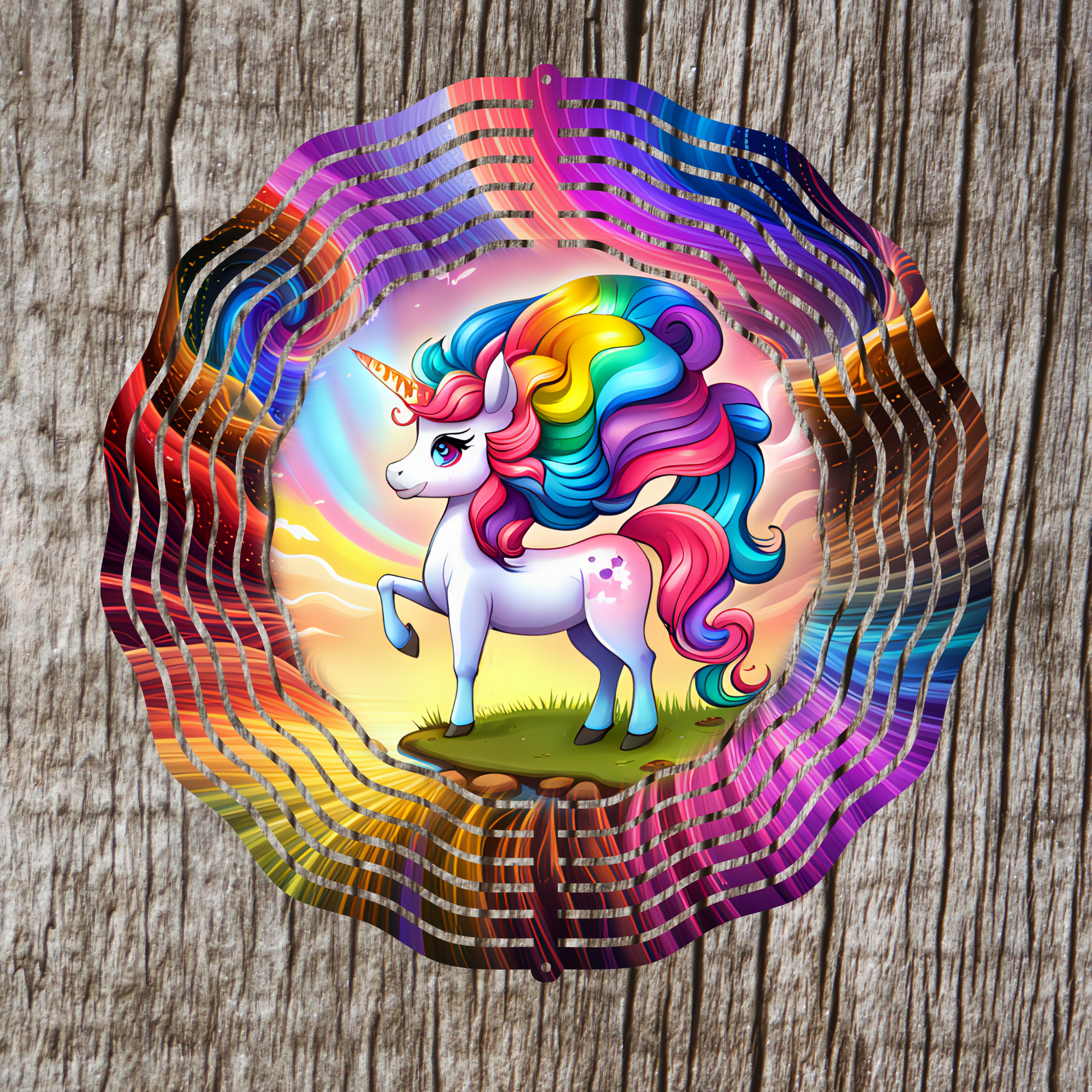 Cartoon Unicorn At Lake Wind Spinner
