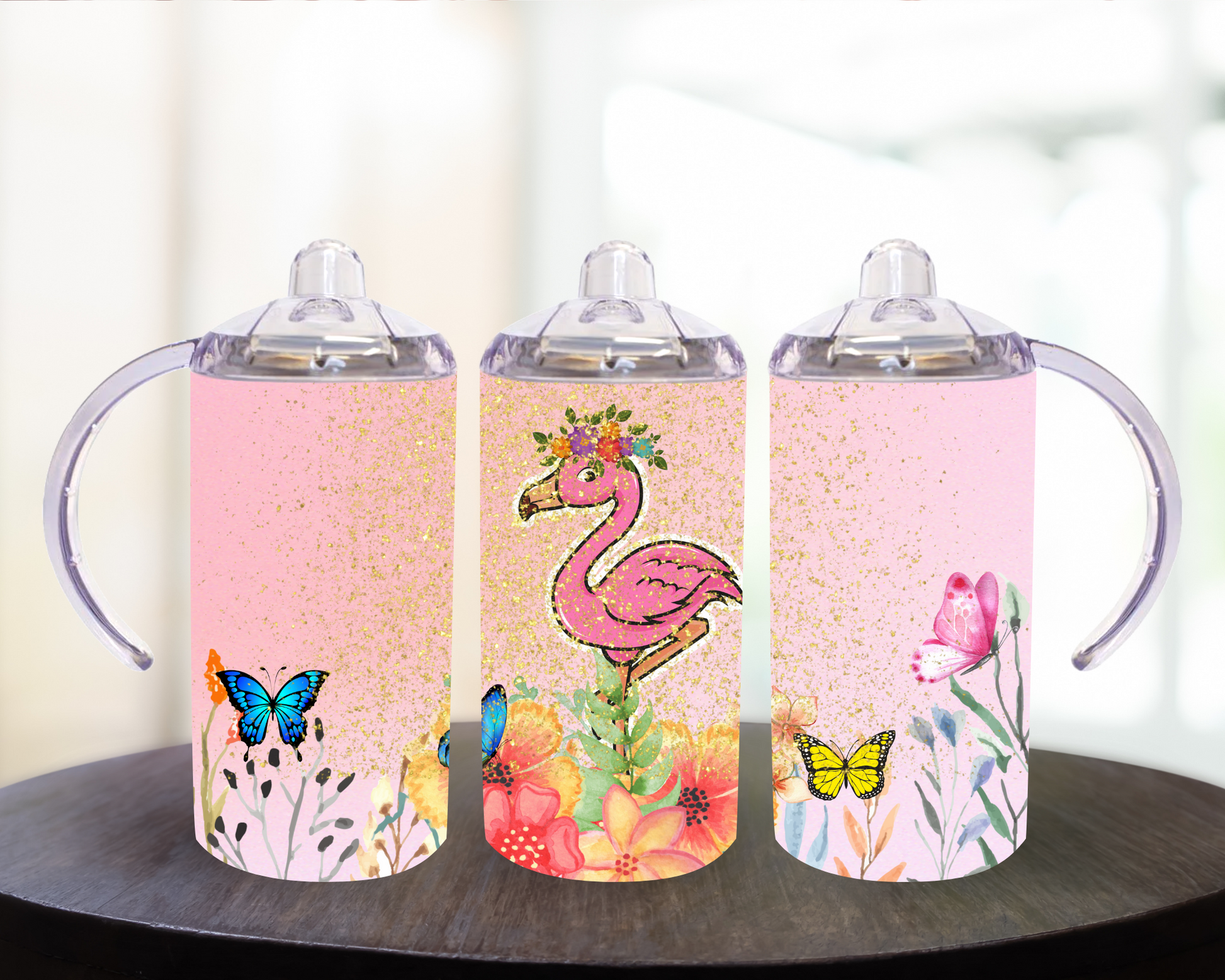 Flamingo And Butterflies 12 oz Sippy Cup